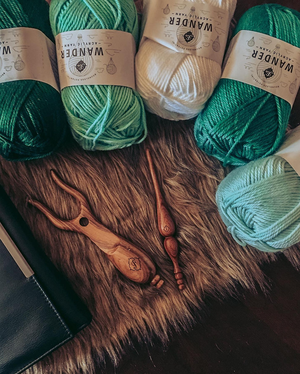 I used Furls Wander Yarn. 100% premium acrylic yarn. It’s a Worsted Weight category 4. From the label — “Wander Yarn is Furls Crochet first acrylic yarn. From its airy, soft, satiny, and wide variety of colors, Wander is for fiber artist who love a touch of luxe and easy versatility.” I have literally fallen more in love with this yarn deeper, from wanting to use it!! It just adds softness and squish into my designs, packed with lots of warmth and all around COZY! You will have about 120yds per skein of each beautiful color, to create anything through your inspiration.